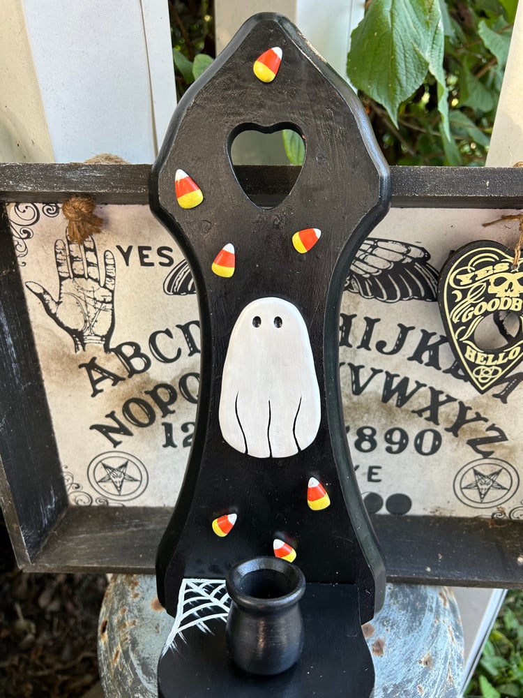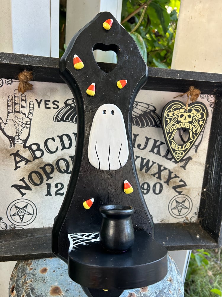 The underrated candy of Halloween! Made with polymer clay, painted with acrylic paint and sealed with gloss. This candlestick holder is perfect for those weirdos who absolutely love candycorn like me!