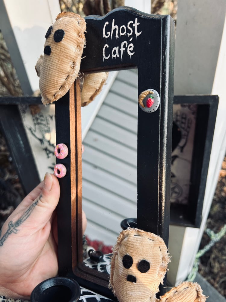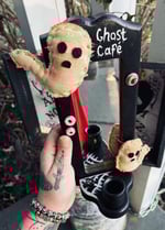 Handmade ghost plush with polymer clay bakery items! Perfect for that coffee lover!