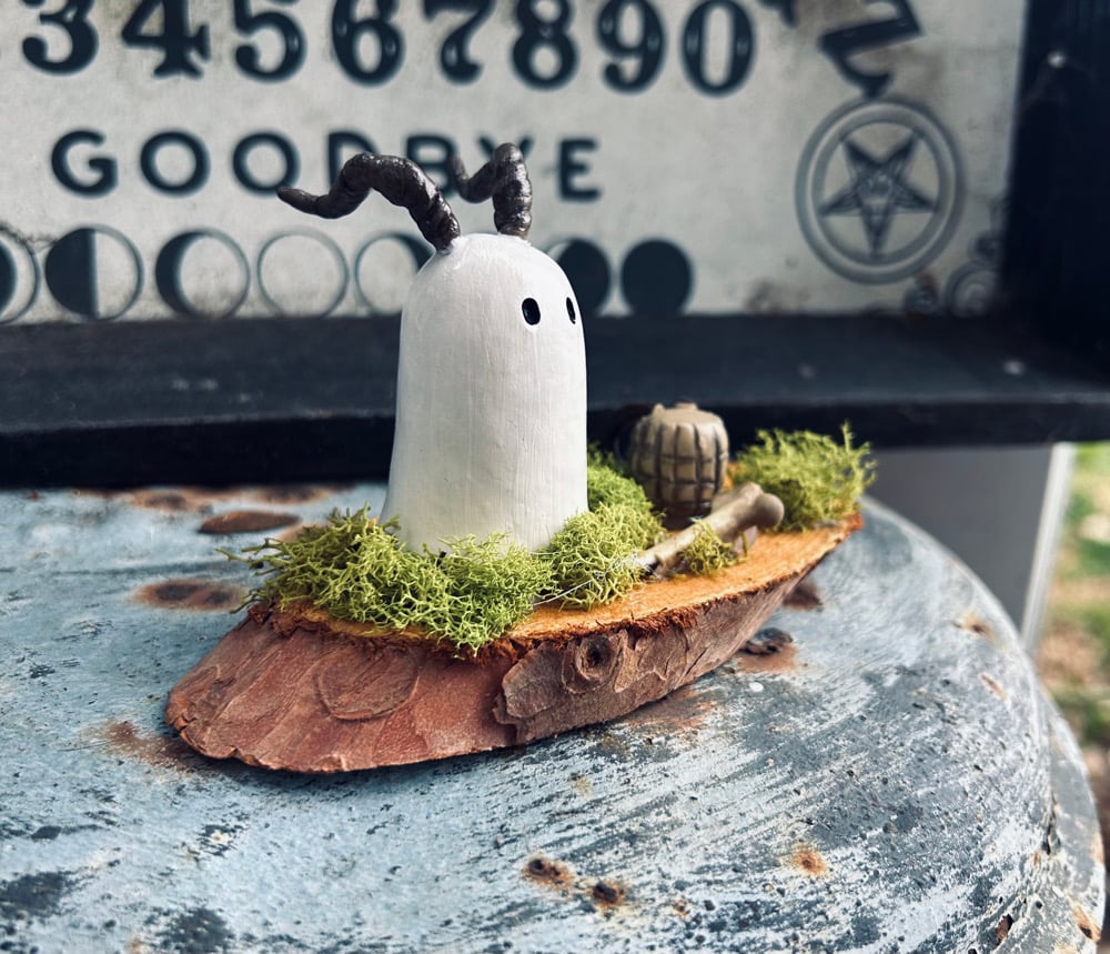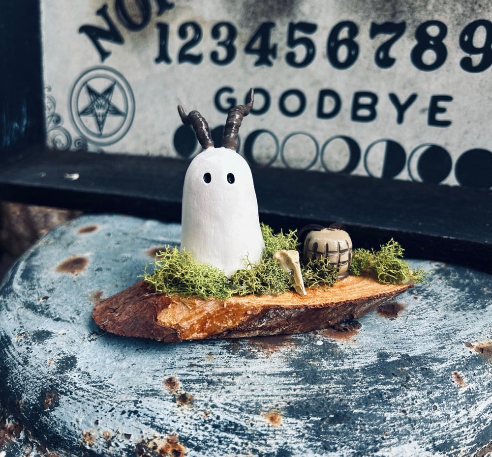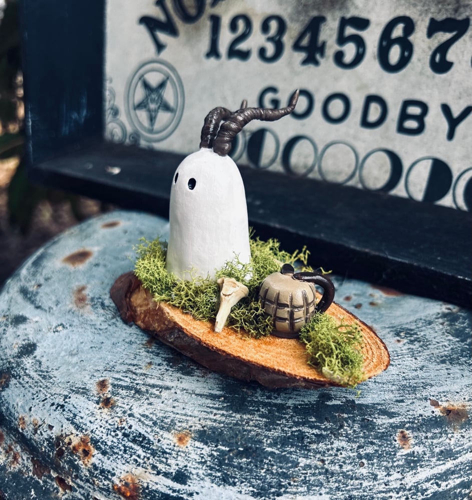 Tis the season for Krampus! Clay Krampus and basket. Ethically sourced bones. All sealed with gloss.